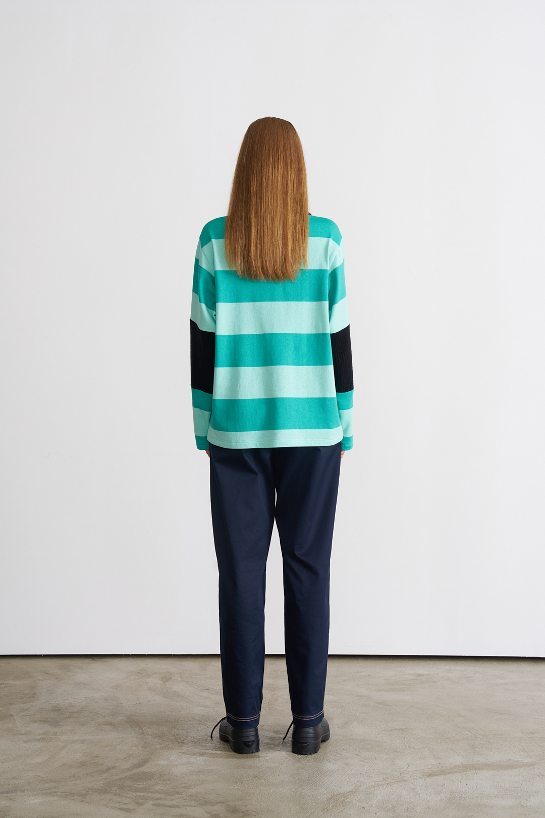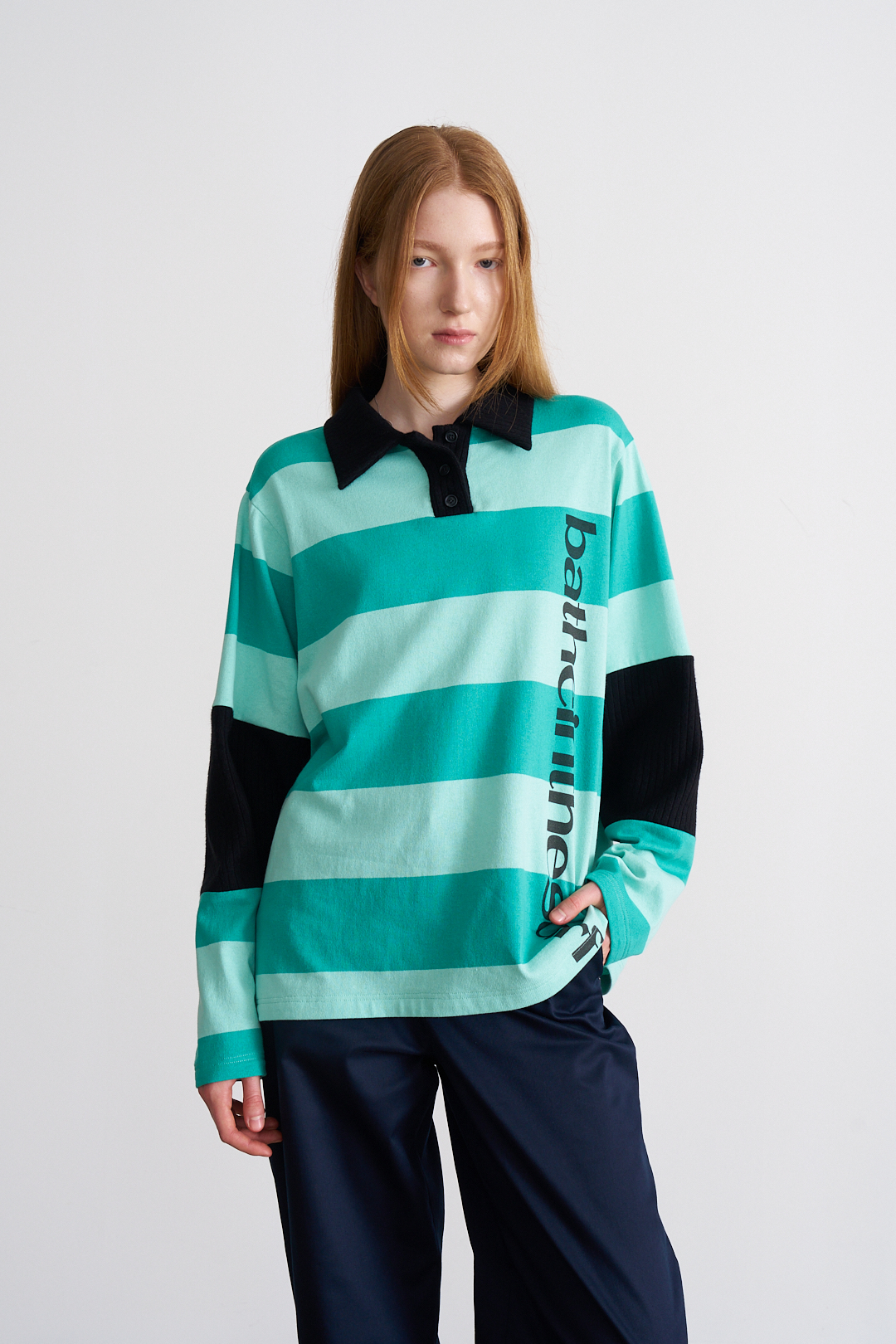 클래식한 럭비 티셔츠 소재와 니트 소재의 조합이 돋보이는 티셔츠 입니다. 따뜻한 질감의 니트 블로킹은 FW시즌 데일리 아이템으로 활용하기에 용이합니다. 볼드한 로고 프린팅으로 시그니처 요소를 더했습니다.