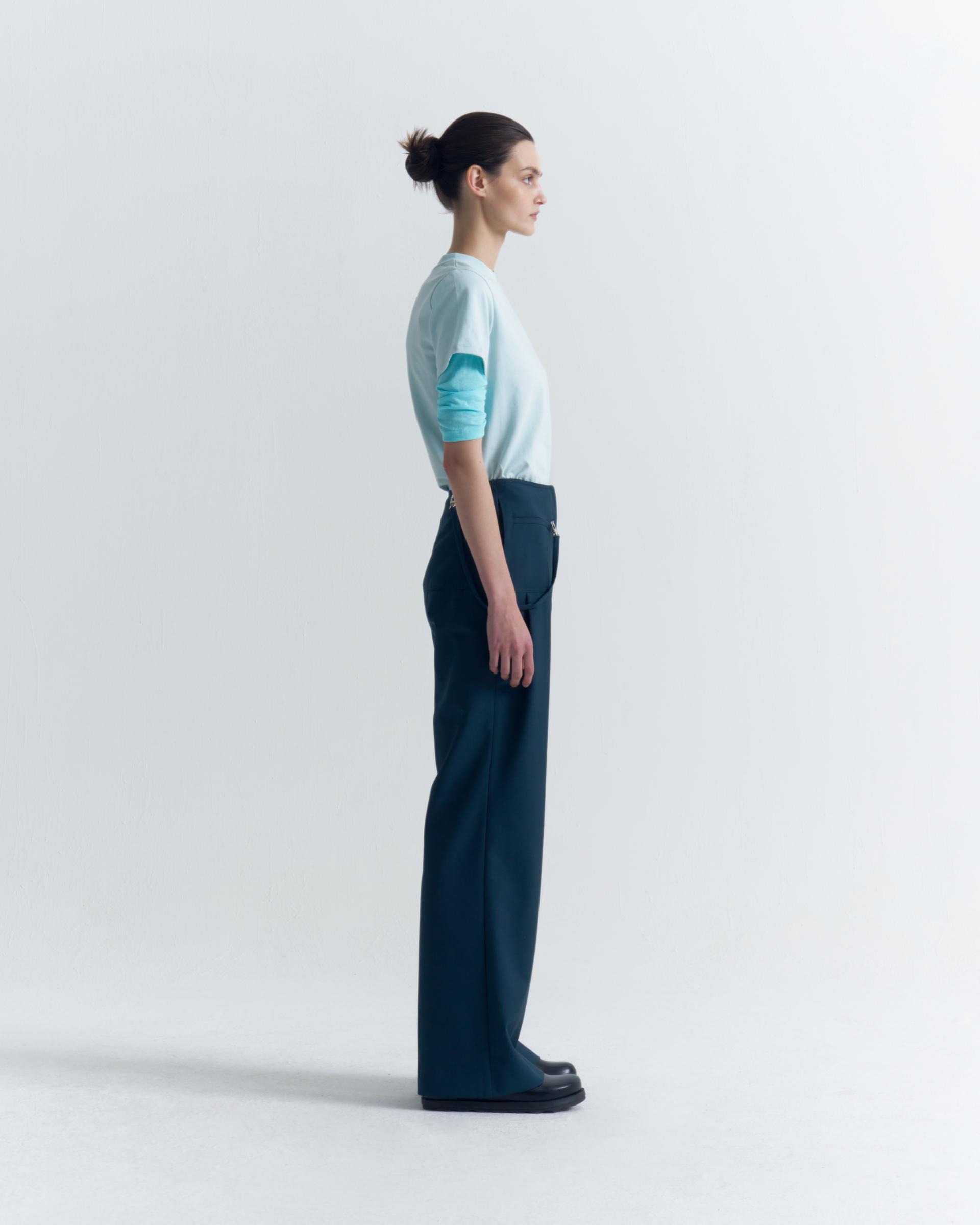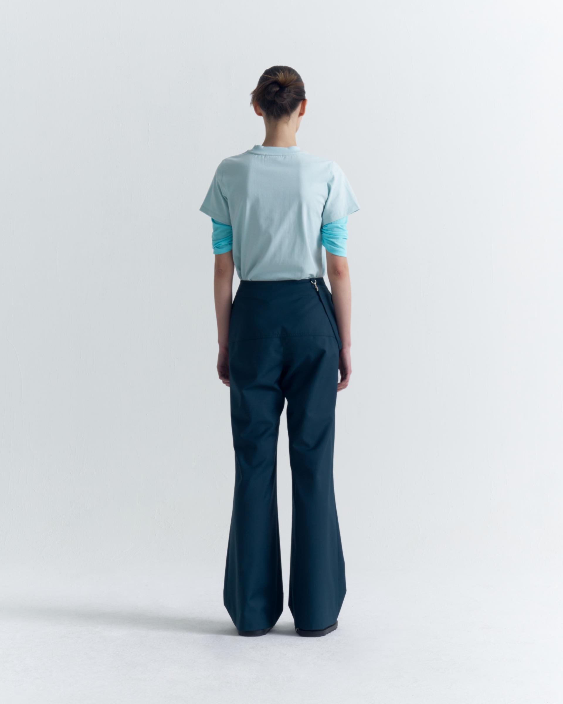 청량한 컬러의 배색 소매가 레이어드된 구조의 티셔츠입니다. 전체적으로 여유로운 스탠다드 핏이며, 탄탄한 소재의 바디와 쉬어한 소매의 질감이 대비를 이룹니다. 안쪽 소매의 셔링이 걷어올린 듯한 실루엣을 연출해줍니다.